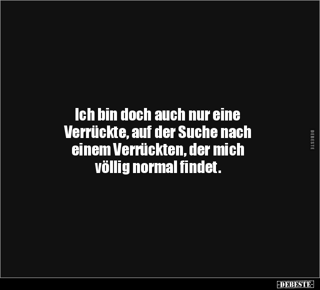 Ich bin doch auch nur eine Verrückte, auf der Suche nach einem Verrückten, der mich völlig normal findet.