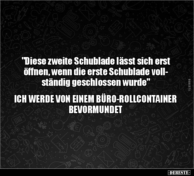 "Diese zweite Schublade lässt sich erst öffnen, wenn die erste Schublade voll- ständig geschlossen wurde" ICH WERDE VON EINEM BÜRO-ROLLCONTAINER BEVORMUNDET