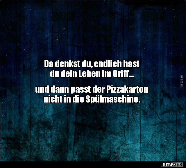Da denkst du, endlich hast du dein Leben im Griff... und dann passt der Pizzakarton nicht in die Spülmaschine.