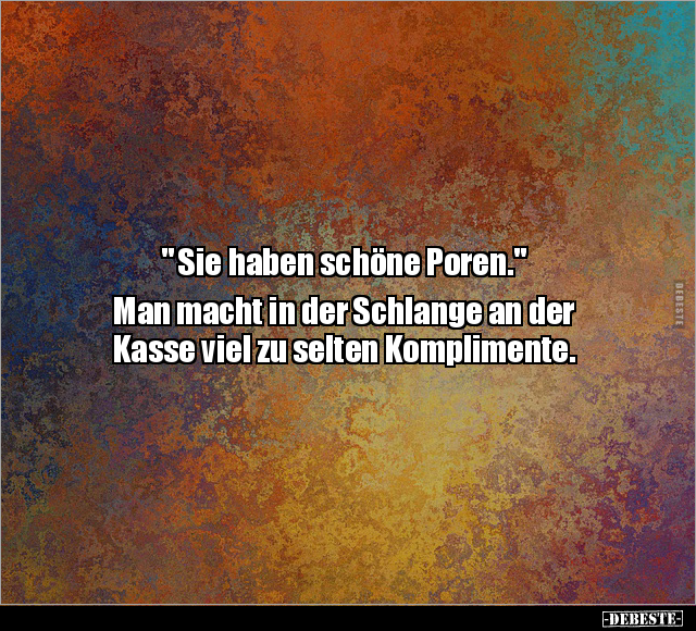 " Sie haben schöne Poren." Man macht in der Schlange an der Kasse viel zu selten Komplimente.