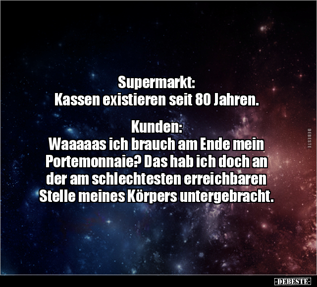 Supermarkt: Kassen existieren seit 80 Jahren. Kunden: Waaaaas ich brauch am Ende mein Portemonnaie? Das hab ich doch an der am schlechtesten erreichbaren Stelle meines Körpers untergebracht.