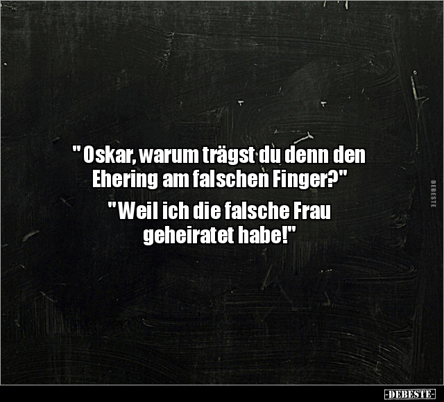 " Oskar, warum trägst du denn den Ehering am falschen Finger?" " Weil ich die falsche Frau geheiratet habe!"
