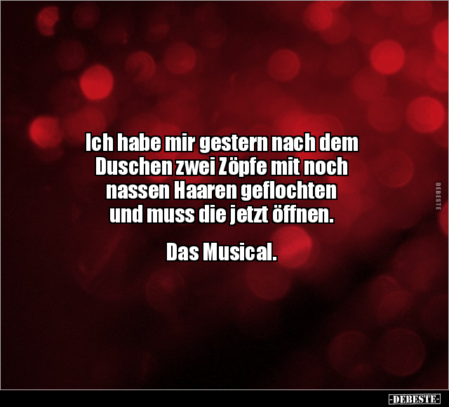 Ich habe mir gestern nach dem Duschen zwei Zöpfe mit noch nassen Haaren geflochten und muss die jetzt öffnen. Das Musical.