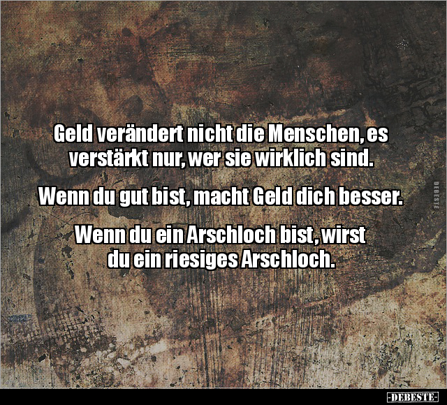 Geld verändert nicht die Menschen, es verstärkt nur, wer sie wirklich sind. Wenn du gut bist, macht Geld dich besser. Wenn du ein Arschloch bist, wirst du ein riesiges Arschloch.