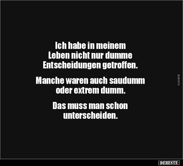 Ich habe in meinem Leben nicht nur dumme Entscheidungen getroffen. Manche waren auch saudumm oder extrem dumm. Das muss man schon unterscheiden.