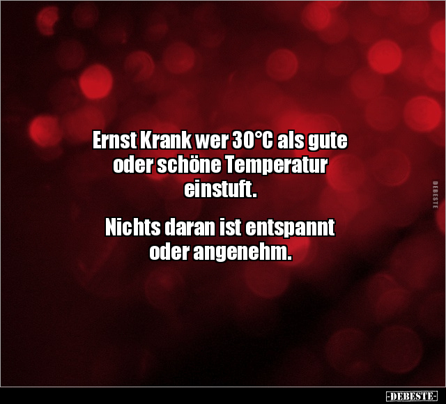 Ernst Krank wer 30°C als gute oder schöne Temperatur einstuft. Nichts daran ist entspannt oder angenehm.