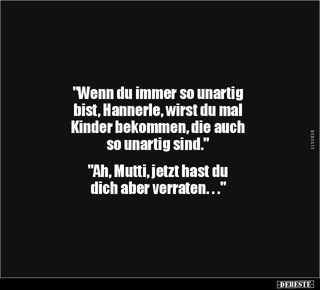 "Wenn du immer so unartig bist, Hannerle, wirst du mal Kinder bekommen, die auch so unartig sind." "Ah, Mutti, jetzt hast du dich aber verraten. . ."