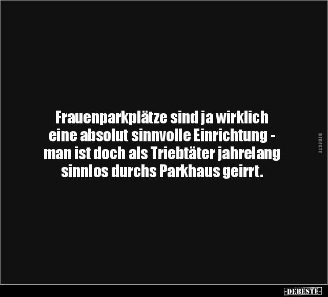 Frauenparkplätze sind ja wirklich eine absolut sinnvolle Einrichtung - man ist doch als Triebtäter jahrelang sinnlos durchs Parkhaus geirrt.
