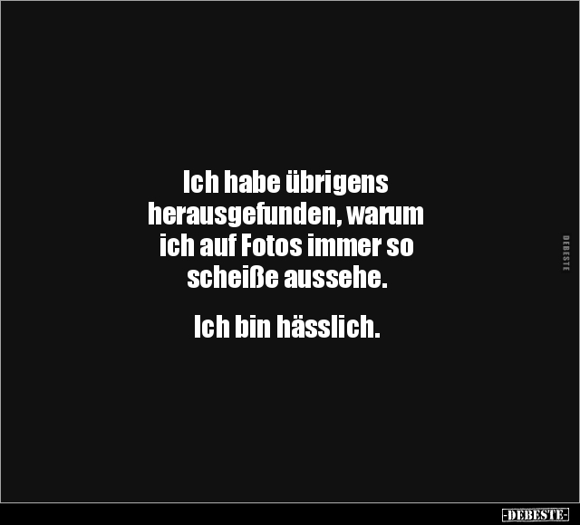 Ich habe übrigens herausgefunden, warum ich auf Fotos immer so scheiße aussehe. Ich bin hässlich.