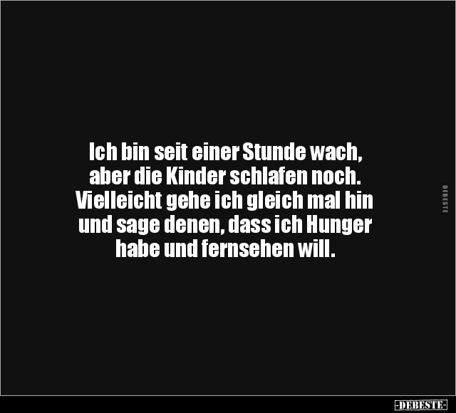 Ich bin seit einer Stunde wach, aber die Kinder schlafen noch. Vielleicht gehe ich gleich mal hin und sage denen, dass ich Hunger habe und fernsehen will.