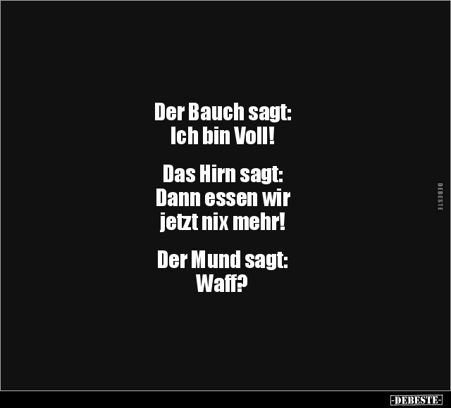 Der Bauch sagt: Ich bin Voll! Das Hirn sagt: Dann essen wir jetzt nix mehr! Der Mund sagt: Waff?