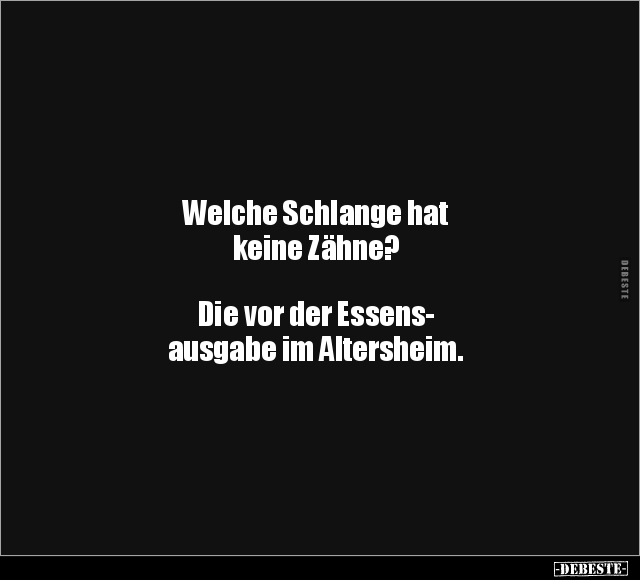 Welche Schlange hat keine Zähne? Die vor der Essens- ausgabe im Altersheim.