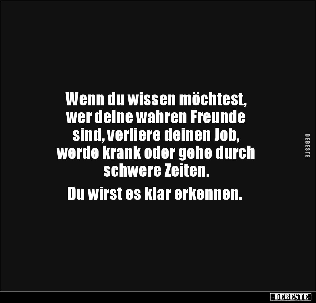 Wenn du wissen möchtest, wer deine wahren Freunde sind, verliere deinen Job, werde krank oder gehe durch schwere Zeiten. Du wirst es klar erkennen.