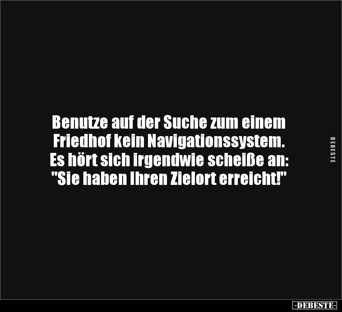 Benutze auf der Suche zum einem Friedhof kein Navigationssystem. Es hört sich irgendwie scheiße an: "Sie haben Ihren Zielort erreicht!"