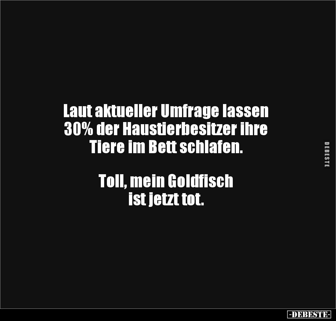 Laut aktueller Umfrage lassen 30% der Haustierbesitzer ihre Tiere im Bett schlafen. Toll, mein Goldfisch ist jetzt tot.