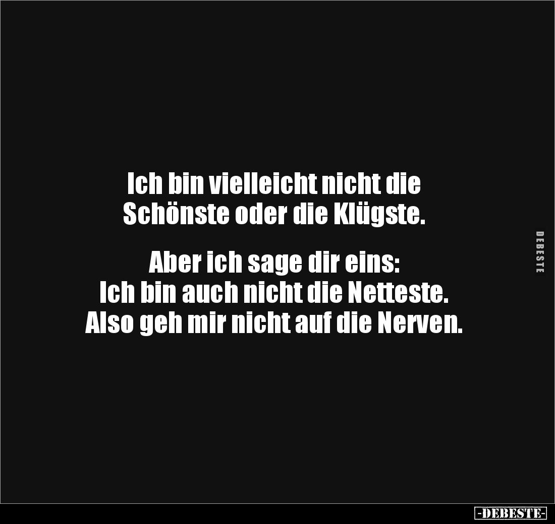 Ich bin vielleicht nicht die Schönste oder die Klügste. Aber ich sage dir eins: Ich bin auch nicht die Netteste. Also geh mir nicht auf die Nerven.