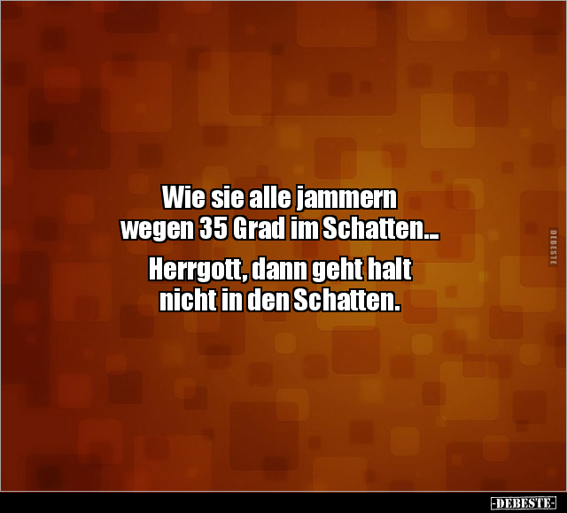 Wie sie alle jammern wegen 35 Grad im Schatten... Herrgott, dann geht halt nicht in den Schatten.