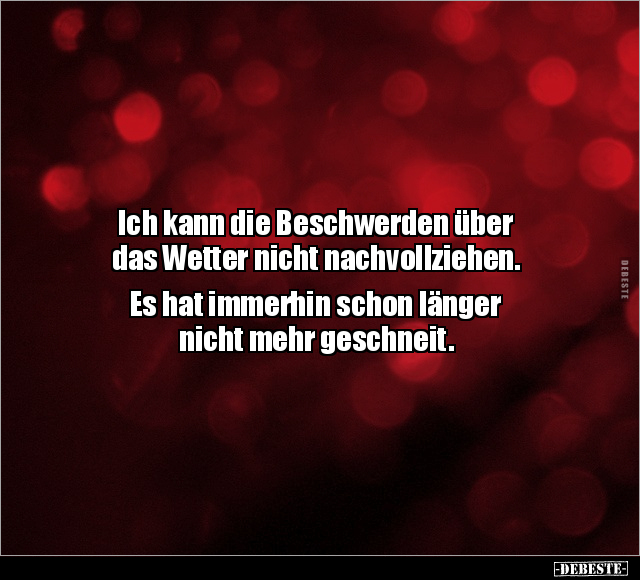 Ich kann die Beschwerden über das Wetter nicht nachvollziehen. Es hat immerhin schon länger nicht mehr geschneit.