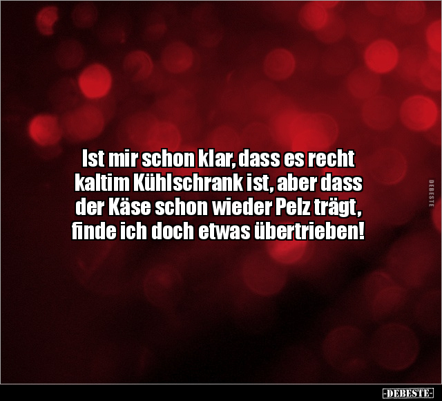 Ist mir schon klar, dass es recht kaltim Kühlschrank ist, aber dass der Käse schon wieder Pelz trägt, finde ich doch etwas übertrieben!