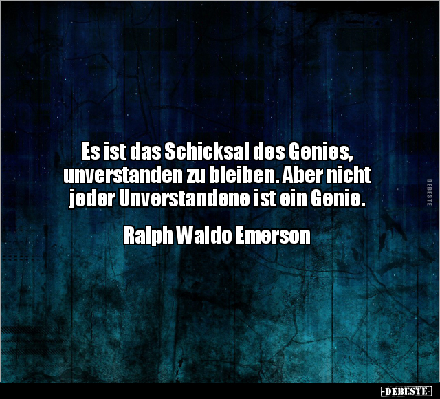 Es ist das Schicksal des Genies, unverstanden zu bleiben. Aber nicht jeder Unverstandene ist ein Genie. Ralph Waldo Emerson