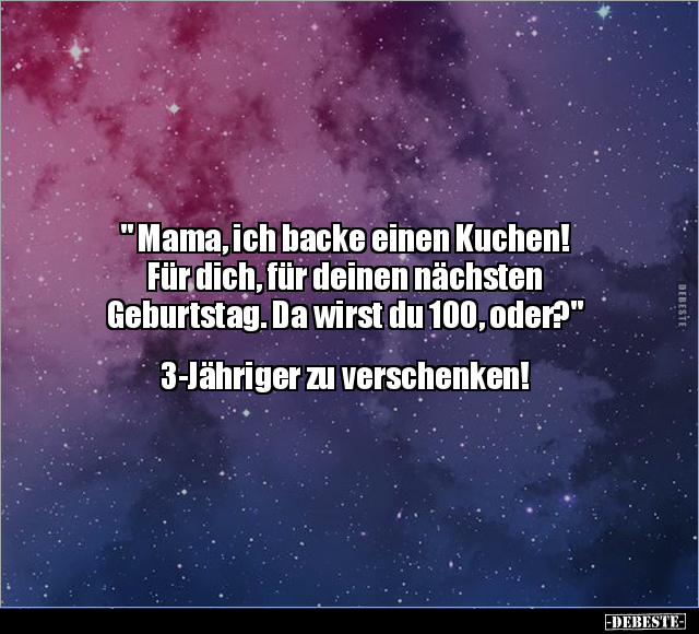 " Mama, ich backe einen Kuchen! Für dich, für deinen nächsten Geburtstag. Da wirst du 100, oder?" 3-Jähriger zu verschenken!