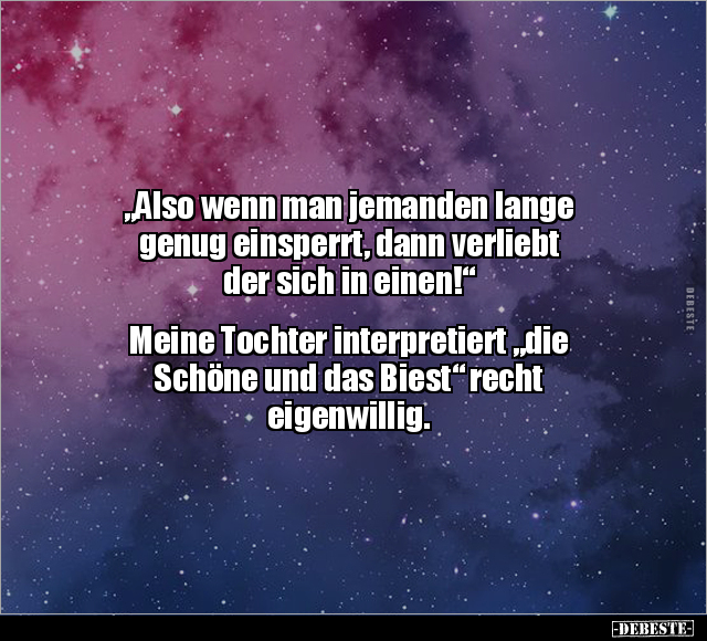 „Also wenn man jemanden lange genug einsperrt, dann verliebt der sich in einen!“ Meine Tochter interpretiert „die Schöne und das Biest“ recht eigenwillig.