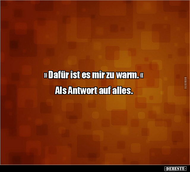 » Dafür ist es mir zu warm. « Als Antwort auf alles.