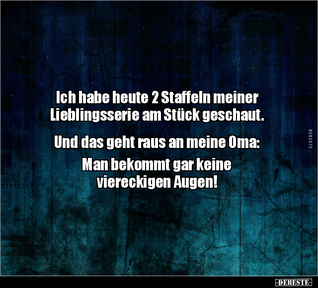Ich habe heute 2 Staffeln meiner Lieblingsserie am Stück geschaut. Und das geht raus an meine Oma: Man bekommt gar keine viereckigen Augen!