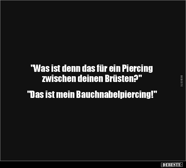 "Was ist denn das für ein Piercing zwischen deinen Brüsten?" "Das ist mein Bauchnabelpiercing!"