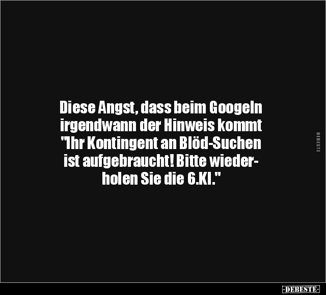 Diese Angst, dass beim Googeln irgendwann der Hinweis kommt "Ihr Kontingent an Blöd-Suchen ist aufgebraucht! Bitte wieder- holen Sie die 6.KI."