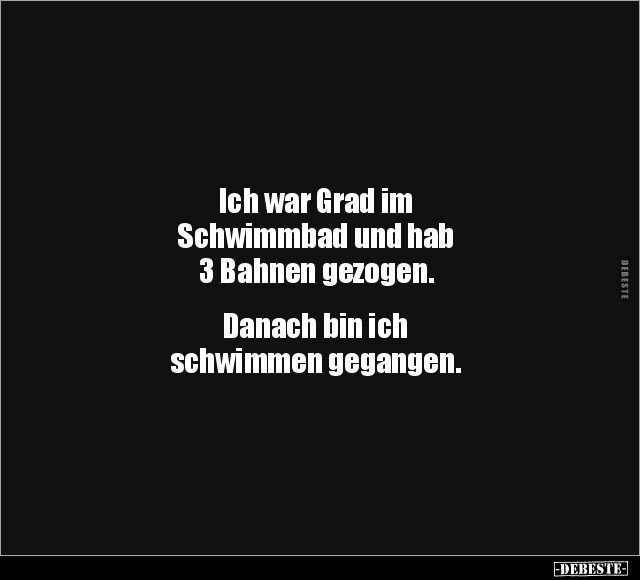 Ich war Grad im Schwimmbad und hab 3 Bahnen gezogen. Danach bin ich schwimmen gegangen.