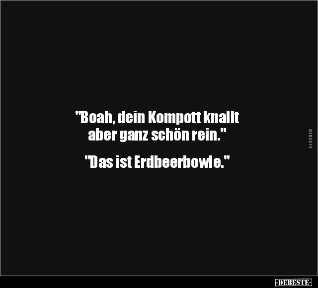 "Boah, dein Kompott knallt aber ganz schön rein." "Das ist Erdbeerbowle."