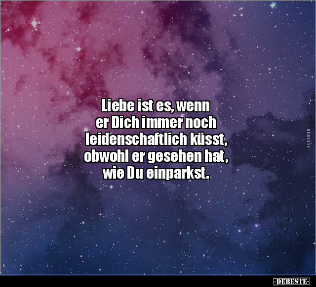 Liebe ist es, wenn er Dich immer noch leidenschaftlich küsst, obwohl er gesehen hat, wie Du einparkst.