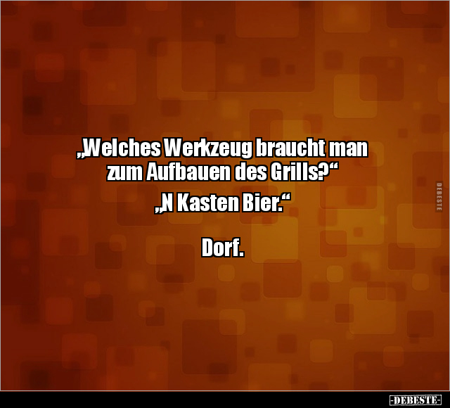 „Welches Werkzeug braucht man zum Aufbauen des Grills?“ „N Kasten Bier.“ Dorf.