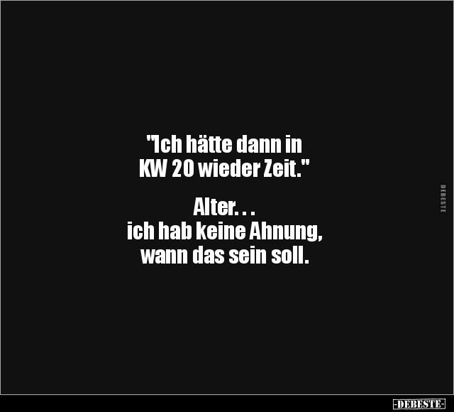 "Ich hätte dann in KW 20 wieder Zeit." Alter. . . ich hab keine Ahnung, wann das sein soll.