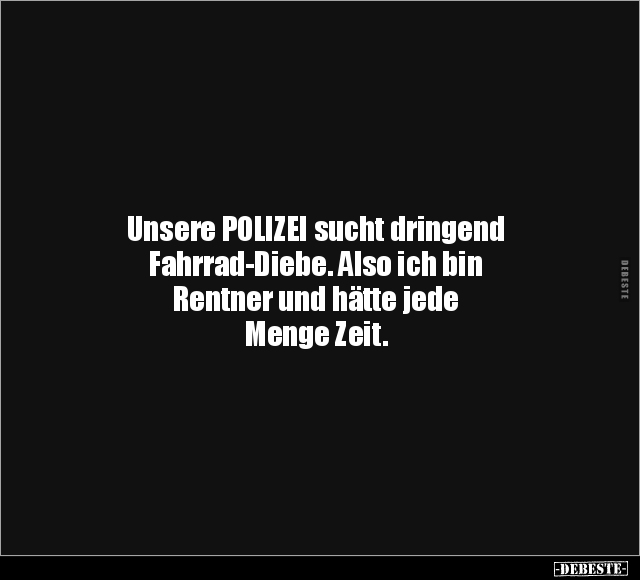 Unsere POLIZEI sucht dringend Fahrrad-Diebe. Also ich bin Rentner und hätte jede Menge Zeit.