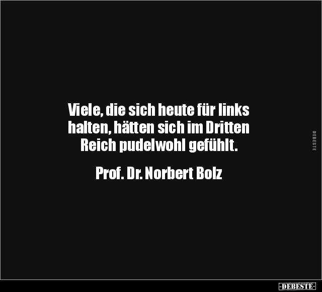 Viele, die sich heute für links halten, hätten sich im Dritten Reich pudelwohl gefühlt. Prof. Dr. Norbert Bolz