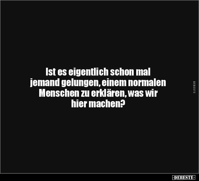 Ist es eigentlich schon mal jemand gelungen, einem normalen Menschen zu erklären, was wir hier machen?