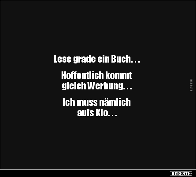 Lese grade ein Buch. . . Hoffentlich kommt gleich Werbung. . . Ich muss nämlich aufs Klo. . .
