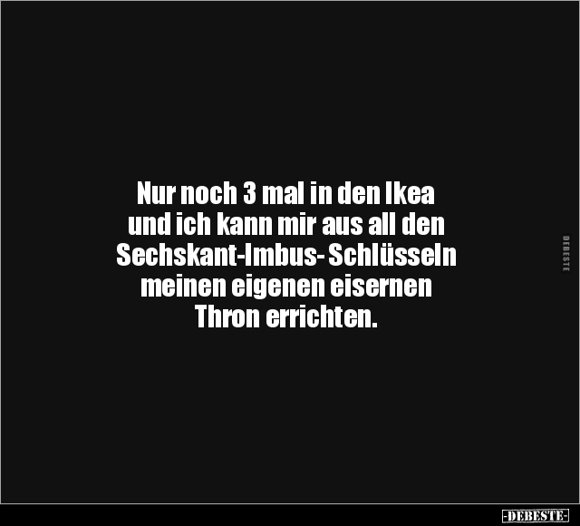 Nur noch 3 mal in den Ikea und ich kann mir aus all den Sechskant-Imbus- Schlüsseln meinen eigenen eisernen Thron errichten.