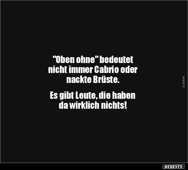 "Oben ohne" bedeutet nicht immer Cabrio oder nackte Brüste. Es gibt Leute, die haben da wirklich nichts!
