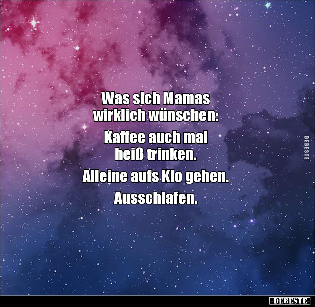 Was sich Mamas wirklich wünschen: Kaffee auch mal heiß trinken. Alleine aufs Klo gehen. Ausschlafen.