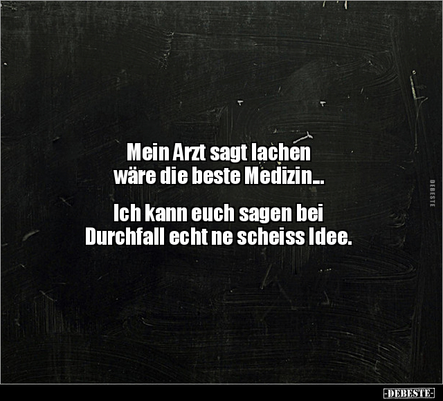 Mein Arzt sagt lachen wäre die beste Medizin... Ich kann euch sagen bei Durchfall echt ne scheiss Idee.