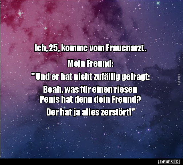 Ich, 25, komme vom Frauenarzt. Mein Freund: " Und er hat nicht zufällig gefragt: Boah, was für einen riesen Penis hat denn dein Freund? Der hat ja alles zerstört!"