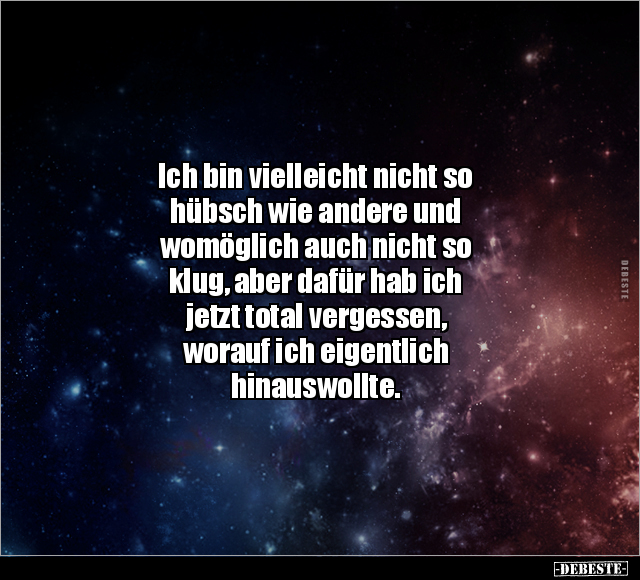 Ich bin vielleicht nicht so hübsch wie andere und womöglich auch nicht so klug, aber dafür hab ich jetzt total vergessen, worauf ich eigentlich hinauswollte.