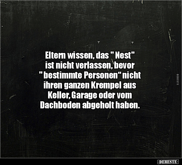 Eltern wissen, das " Nest" ist nicht verlassen, bevor " bestimmte Personen“ nicht ihren ganzen Krempel aus Keller, Garage oder vom Dachboden abgeholt haben.