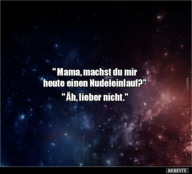 " Mama, machst du mir heute einen Nudeleinlauf?" " Äh, lieber nicht."