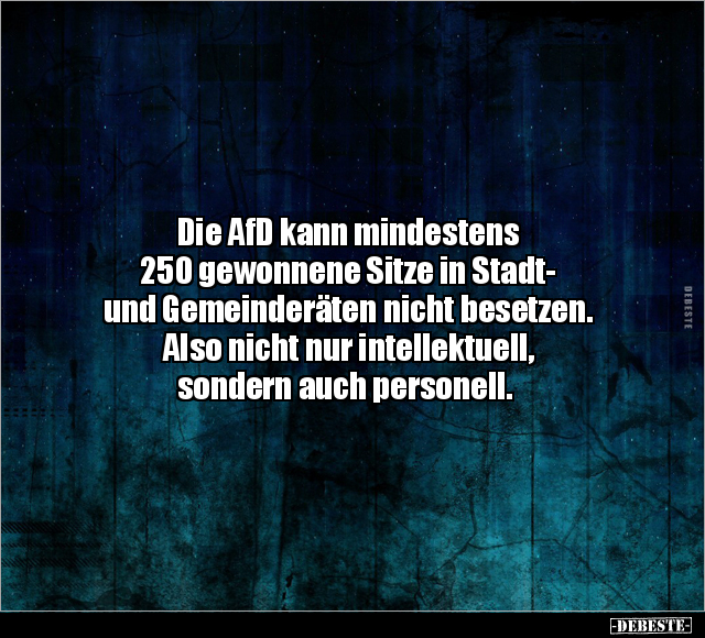 Die AfD kann mindestens 250 gewonnene Sitze in Stadt- und Gemeinderäten nicht besetzen. Also nicht nur intellektuell, sondern auch personell.