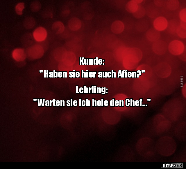 Kunde: " Haben sie hier auch Affen?" Lehrling: " Warten sie ich hole den Chef..."