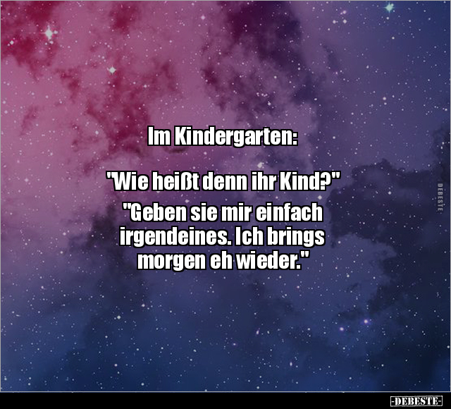 Im Kindergarten: "Wie heißt denn ihr Kind?" "Geben sie mir einfach irgendeines. Ich brings morgen eh wieder."
